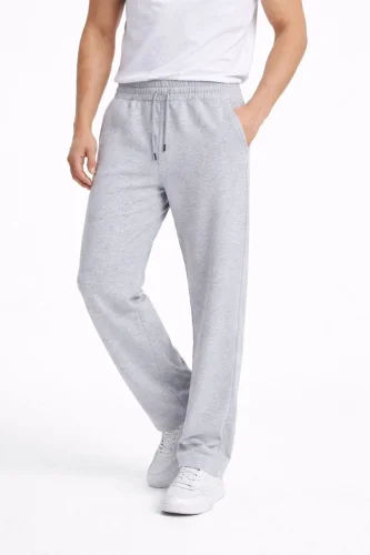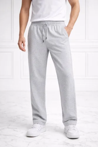 Erkek Düz Paça Beli Lastikli İpli Günlük Spor Eşofman Altı Rahat Fit Gri