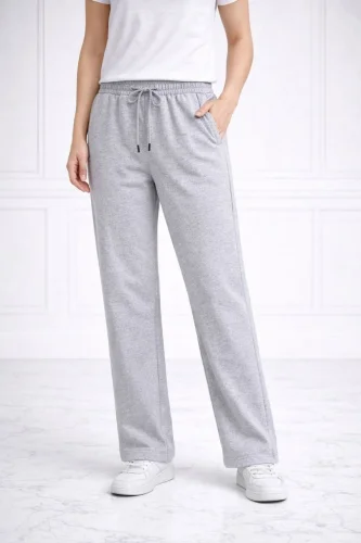Düz Paça Beli Lastikli İpli Günlük Spor Eşofman Altı Rahat Fit Gri